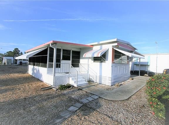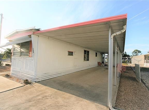 This Mobile home for sale in Carriage Village is located in a pet-friendly and active 55+ community. Enjoy Florida sunshine affordably in this 2/1.5 home with weatherized screen porch, large carport and, utility room The eat-in kitchen features laminate wood flooring. The lanai is also winterized and can be enjoyed year round.The home is very well maintained and features a rock-filled yard for ease of maintenance. Carriage Village is an easy place to go anywhere in SW FL. The home is conveniently located minutes from the downtown Ft. Myers River District, the Historic Shell Factory, I-75, and US 41. The community amenities include the heated community pool/clubhouse, a recreation center, putting green, shuffleboard courts and horseshoe pits, plus a storage area where RVs, boats, etc. can be stored. The monthly HOA fee is just $77.00 a month! You OWN your lot! There is no lot rent. The home is connected to central water and sewer.