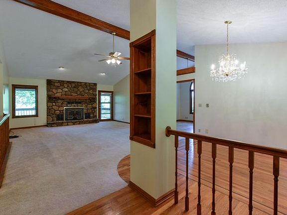 The Potential is Endless for this Super Spacious LAKE FRONT Getaway. Nestled on nearly 3 wooded acres, this huge 4 bedroom, 3 bath home has Lake Views - PLUS trim a few trees on your large lot and the possibilities are endless. Stone wood burning fire place in both upper and lower levels. Bonus: the kitchen and dining have heated flooring!! Sitting room off the Breakfast area plus Laundry room and Master ensuite with incredible walk-in closet as well as 2nd and 3rd beds and hall bath located on main level. In-law suite? Look no further! Drive down to the back for easier entry to the Great Room Wet Bar Kitchenette on the lower level. This also includes the fourth large bedroom and bathroom with walk-in shower. Washer Dryer hook-ups and ample storage included. BOAT DOCK a short walk down the road additional $25k. Roof about 6yrs and decks have been reinforced. Park your golf cart in the detached garage storage behind the home. MAKE THIS HIDDEN GEM into your own GOOD LIFE!