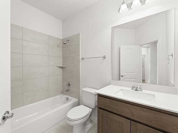 The Tucker showcases a beautiful two-story floor plan, optimal for spacious living. After passing through the inviting foyer, this floor plan offers a cozy powder room and a separate multi-purpose room - think study, office, or even an extra bedroom - before opening into a large living space. The well-designed kitchen offers bar space and ample counter and storage space that includes a walk-in pantry. Enjoy family meals in the beautiful dining room, in front of the TV in the spacious living room, or on the serene outside covered patio. The large master suite on the main floor directly connects to a lovely bathroom featuring a double vanity sink, an inviting bathtub, a sparkling glassed shower, and a walk-in closet. The second story opens into a loft area overlooking the downstairs living room before leading to two guest bedrooms, each with its own walk-in closet, a linen closet, and a shared full bathroom. Finally, the two-car garage gives direct access to the mud and laundry rooms and a coat closet before stepping into the hallway leading to the main living spaces.