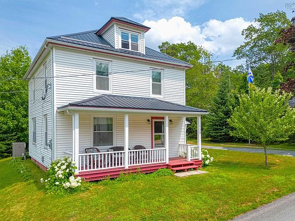 Welcome to beautiful Mahone Bay by the sea. Master mariner Clary Burgoyne built this home for his family in 1923 and it has been occupied by his descendants for 100 years. Clary was a crew member of the Bluenose I for its famed last races off Gloucester, Massachusetts's. The home is a classic two and a half story "four square", with a covered front verandah across its front. It features a gracious, exceptionally large front foyer, spacious living-room and formal dining room - accessed through double doors from the front parlour or single door from the kitchen. The main floor powder room is discretely tucked away off the rear entry, which also conveniently houses a laundry. This home boasts its original trim and beautiful wood floors. The second floor has two bedrooms in front, a small middle bedroom ( ideal as an office) and a corner bedroom adjacent the family bath at the rear of the second floor. The walk-up attic is ideal for seasonal items or those keepsakes we don't wish to part with. A full basement would serve well for garden storage or a workshop as it has its own entry door from the back garden. A single car garage at the end of a paved driveway for two cars, is a welcome addition to this fine home. The covered front verandah would likely become your favorite respite with a good book in the cool summer breeze. Set on a quiet street, this home is a short walking distance to shopping and the ocean. It has had full upgrades including: ducted heat-pump furnace, metal roof, wiring, insulation, newer windows, upgraded baths and remodeled eat-in kitchen. A short easy stroll to the amenities of Main Street and the ocean at the community wharf. Just one hour's drive to Halifax or Stanfield International Airport. A classic, Lunenburg County, sea captains' house, framed in old-growth Hemlock - withstanding the tests of time. This home of simple design will certainly provide a warm safe home for many generations to come.