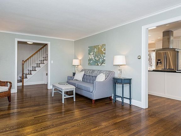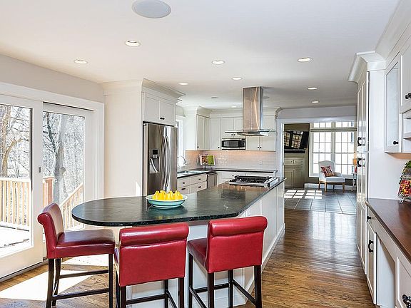 Once upon a time, on a quiet street, the most charming house magically appeared. As if out of a fairytale, this classic brick home is just waiting for your chapter. Up the Goshen stone walkway, the quaint Juliette balcony & timeless slate roof are striking. A sunny formal living room w/ hw fl & cozy FP welcomes & a gorgeous Chapdelaine kitchen dining area w/ soapstone counters, SS appls, center island & custom cabinetry is a chef's dream. From the private deck, enjoy serene wooded views of the winding stream, stone patio & new fence. French doors open to the family rm w/ floor length windows, exposed brick, vaulted ceilings & radiant heated tile floor. Stunning & spacious, the 2nd fl touts 3 bdrms, hall bath plus Master w/ en-suite glass door shower & radiant heated fl. Desirable mudroom & 1st fl laundry plus new central air throughout. The LL walk-out w/ FP, full bath, separate entry & buit-ins is an ideal guest suite/home office. Other mentions. hardwood floors throughout, Pella Windows 2010, Slate roof, Central Air 2020, HWT 2016, Boiler2005, insuated outside storage under addition. Find your happily ever after in this enchanting home.