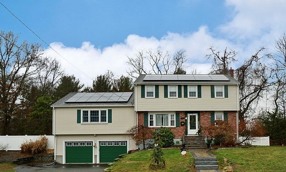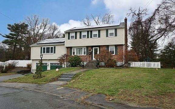 Wonderfully renovated Colonial on a cul de sac with 2 car garage. Hardwood floors in every room! 4 Bedrooms, 2 full baths. Cathedral family room, 24x24 w new hardwood floors and slider to exterior deck. Living room with newly installed Custom Spanish Tiles on gas fireplace. Renovated kitchen with gas stove top, granite and stainless steel. Eating area and access to deck. Brand new finished basement. New Roof and Solar panels in 2019. New AC/Heat Pump 2020. Rinnai Tankless on demand hot water heater! Custom built front stone walkway with granite steps and new custom railings 2020. In ground pool w new liner and filter. 2 Baths with newer vanity, tub and tiled walls in shower.. Fenced-in yard for pool and additional second fenced in large yard for play or gardens. Professionally landscaped exterior. Low monthly costs, with solar panels even paying out money in sunny months! Buyers to assume Solar contract. Easy access to 495!