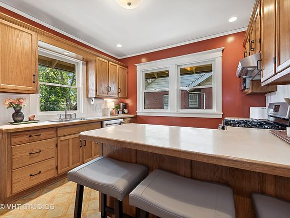 Fantastic opportunity with this Vintage brick Mid Century home situated in the heart of Crystal Lake, within minutes of all levels of school and Downtown C.L. with loads of shopping, restaurants & Metra train station! A home with true curb appeal featuring a brick & cedar exterior, a relaxing enclosed front porch and mature trees that engulf the area. Spacious living and dining rooms with beautiful hardwood floors, high ceilings, original crown molding, gorgeous wood encased entryways and built-in glass cabinets. Terrific kitchen boasting natural wood cabinets with black hardware, plenty of cabinet & counter space, stainless steel appliances, white trim and bead board paneled backsplash. Main level offers 2 bedrooms including the primary bedroom that has wood floors and a large closet with French doors & wonderful built-ins. 1st floor bathroom features tiled flooring & an original claw foot tub. 2nd floor has 2 spacious bedrooms, a full bathroom with double sinks & a built-in hamper, and two large storage closets. Extra entertaining space in the partially finished basement that has a good sized family room. The basement also has an office/bonus room, laundry room with a sink, workshop or exercise area and built in storage shelving. Oversized 2 car detached garage. Beautifully landscaped yard with a fenced-in backyard and a brick paver patio out the back door. Roof and gutters are 3 years old! Walking distance to schools, the library, Downtown & Metra! Close to the Village Hall. Short drive to Rt. 14 or Rt 176. Highly rated Crystal Lake Schools!