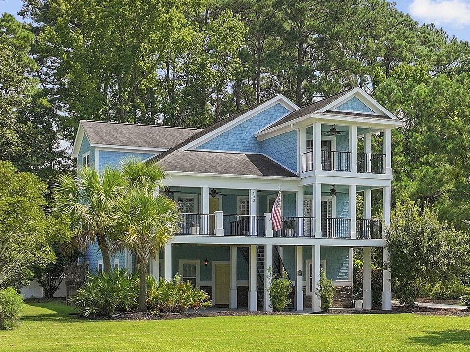 Welcome to this stunning raised beach home in the highly sought-after gated community of Pottery Landing. Thoughtfully designed for multi-generational living, it features a fully equipped in-law suite with its own private entrance, kitchen, living area, laundry, and bathroom on the ground level. The main level boasts a spacious primary suite, vaulted family room, and kitchen with stainless steel appliances and solid-surface counters. Enjoy meals in the dining area or take in the serene surroundings from the front or rear balconies. Upstairs, you’ll find additional bedrooms, each with its own en-suite bathroom, and one with a private balcony. Situated on a half-acre lot, the property offers lush landscaping, plenty of privacy, and outdoor spaces perfect for relaxation. Residents of Pottery Landing enjoy exclusive access to community amenities, including a pool, clubhouse, boat dock, and launch with direct access to the Waccamaw River. Whether you’re looking for a home that accommodates extended family, or simply desire a spacious, versatile layout, this property has it all. Conveniently located near downtown Conway and just a short drive to Myrtle Beach. Schedule your showing today!