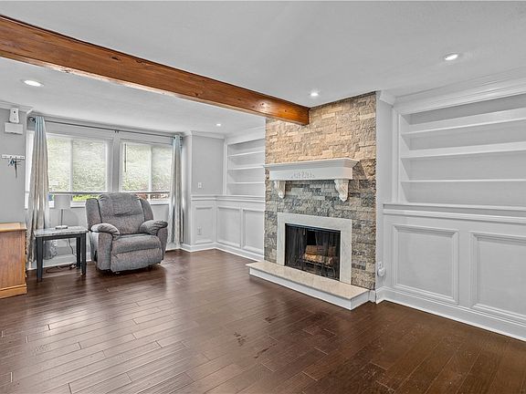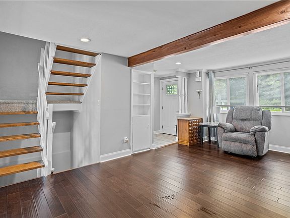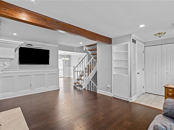 Welcome to 133 Ramparts Blvd. A 3 bedroom, 2 1/2 bath townhouse with level access. The open entry includes a powder room and a large closet for storage. A modern design offsets the open, bright floor plan. Shades of neutral colors and gleaming hardwood floors complete the design. Custom-built shelving offsets the log-burning fireplace. The dining room sliding glass door opens to a spacious deck. The unitized kitchen includes newer stainless steel appliances, a pantry, and lots of cabinet space. An open bar between the kitchen and dining room seats 2-3. Three spacious bedrooms with hardwood or newly carpeted floors. A lower-level family room adjoins a full bath and a spacious laundry room with extra storage shelves. The sliding glass door opens to the patio and long level grassy area. New furnace and a/c . Owner owns and maintains the back and front yard grassy areas