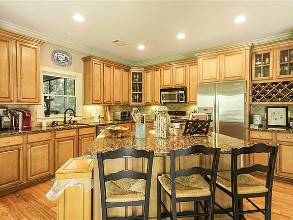 - Kitchen Features: Breakfast Bar, Cabinets Stain, Pantry, View to Family Room, Stone Counters, Breakfast Room