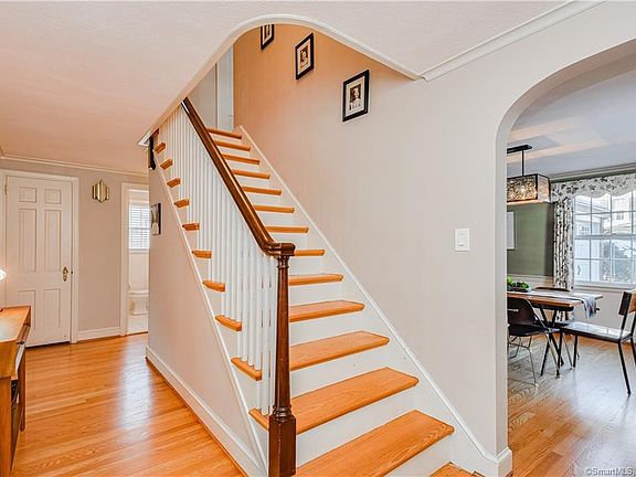 Stately Brick Center Hall Colonial Loaded with Charm The first floor has a large living room with fireplace that leads to a den with French doors and built ins at one end, and at the other there is a light filled enclosed porch with exposed brick and sliders leading to the park-like backyard There is plenty of cabinet space in the remodeled eat-in kitchen, featuring stainless steel appliances, grey cabinets, light counter and subway tiled backsplash. The kitchen also features a cozy breakfast nook. A half bath and spacious dining room with built in corner hutch complete the first floor. The 2nd floor has 4 spacious bedrooms, including the master suite and 2 full baths. The 3rd floor has the 5th bedroom and another full bath. The partially finished lower level has a fireplace making for great additional living space. 2 car attached garage, central air and natural gas heating. Freshly painted walls and refinished hardwood floors throughout complete this story book home