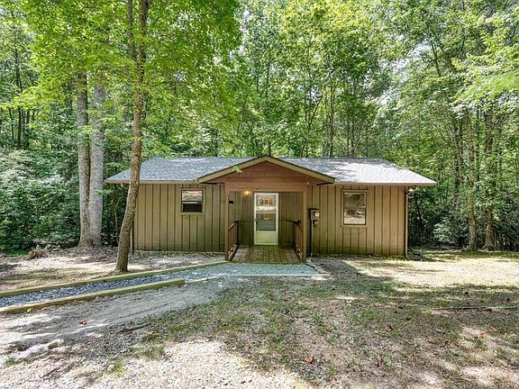 Cozy cottage less than 4 miles from Downtown Blairsville tucked in the woods with just over an acre of gentle laying property with frontage on a small creek. The home has a new roof, new windows being installed, new LVP flooring and freshly painted inside and out. Central heat and air, wood burning fireplace, open floor plan with 2 bedrooms, large covered porch to enjoy the natural beauty.