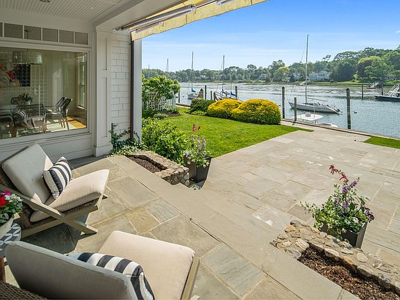 Looking for a luxurious waterfront home w/ a DEEP WATER DOCK? You've found it! This home's chic yet beachy vibe will draw you in w/spectacular views of the Five Mile River right out your door, & direct access to LI Sound. With views from every room, the main level boasts living room w/ stone fireplace, a chef's kitchen with huge pantry, dining room and a sep office. Upstairs is a sumptuous MBR Suite w/custom walk in closet, dressing room, & private balcony to enjoy morning coffee and vibrant evening sunsets. There are 2 add'l en suite bedrooms. The 3rd flr is a huge sunlit family room w/soaring ceilings, windows over the water, built ins, a bedroom & full bath. Outside is a spacious blue stone patio overlooking your boat slip. Amazing location & maintenance free living on CT's Gold Coast!
