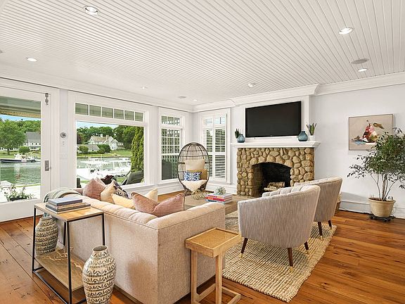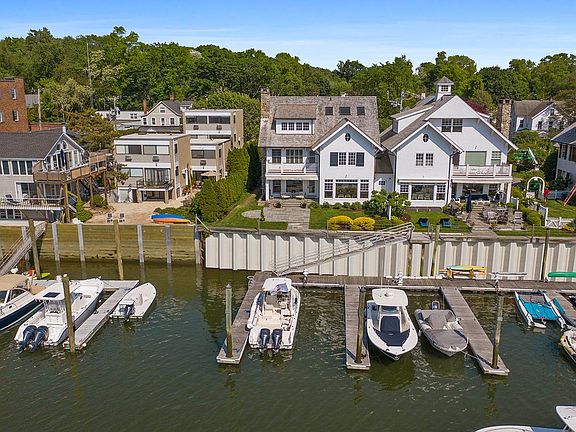 Looking for a luxurious waterfront home with Deep Water Dock? You've found it! This home's chic yet beachy vibe will draw you in with spectacular views of the Five Mile River right out your door, and direct access to Long Island Sound. With water views from every room, the main level boasts high ceilings, living room with stone fireplace, a chef's kitchen with huge pantry, dining room and a separate office. Upstairs is a sumptuous Master Bedroom Suite with custom walk in closet, dressing room, and private balcony to enjoy your morning coffee and vibrant evening sunsets. There are 2 additional en-suite bedrooms. The third floor is a huge sunlit family room with soaring ceilings, windows over the water, built ins, a bedroom and full bath. Outside is a spacious blue stone patio overlooking your boat slip, making this a sea lovers dream. Location couldn't be better for maintenance free living right in the heart of Rowayton on Connecticut's Gold Coast. Private driveway and ample parking.