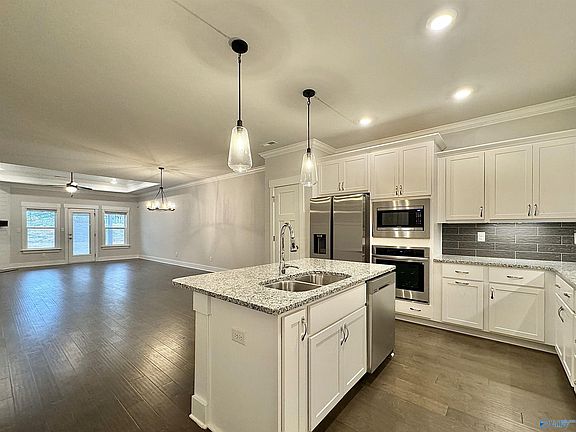 Open House 2-4pm Sat 12/2 & Sun 12/3! Moved in ready brand new one story home within Madison City Schools! Convenient to I-565, HSV airport, Toyota Field, Towne Madison, and downtown Historic Madison Shops & Restaurants. Open floor plans offer 9 foot ceilings, 3 bedrooms, 2 baths, 2 car gar, large open kitchen, great room, dining area & upscale finishes. Your home includes hw flooring in all main living areas, gourmet kitchen with gas cooktop & granite or quartz countertops. Great room offers trey ceiling & shiplap, fireplace, master bedroom offers trey ceilings. A stunning 4 foot tile shower with glass surround, lux soaking tub with tile surround & double vanities await you.