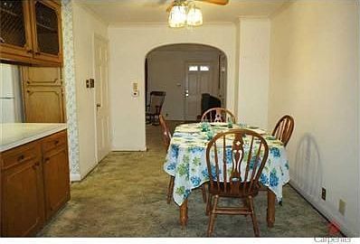 Don't just drive past this cutie, it's much larger than it looks! Charm and character abound, from the arched doorways, the corner cabinet in dining area, lots of built-in cabinetry tucked throughout! Step-saver kitchen features abundant cabinetry. The sunny family room will quickly become you and your plant's favorite hangout. Upstairs is a bedroom with en suite. Unfinished basement feat custom glass-block bar.