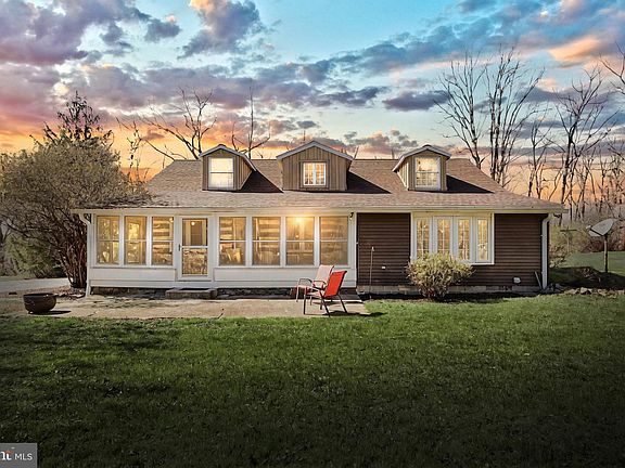 You won't want to miss out on this one of a kind getaway. If you enjoy privacy and seclusion you have found it! Original log cabin that was added to. Picture yourself in the delightful sunroom which has the original log cabin wall, where you can watch wildlife, listen to the babbling stream and enjoy peace and quiet. Pantry/storage room off sunroom. This home is cozy yet spacious, with over 3500 SF. Quaint family room boasts beamed ceiling, built-ins, stone fireplace, knotty pine panelled walls, built-in gun cabinet and large storage closets. There is a perfectly placed office off the FR. Spacious formal dining room perfect for family gatherings. Large kitchen with laminate plank floors, wood cabinets and dining area. First floor master bedroom with large double closets. Adjoining bath with ceramic tile floor. Additional kitchenette, bedroom, full bath and living room at one time used as in-law living quarters. The second floor boasts 2 additional spacious bedrooms, one with window seat storage and a full bath. There is plenty of storage, with crawl spaces in bedrooms and attic space with pull down stairs in in-law bedroom. The exterior has a large outbuilding/storage shed with kennels, tree house and above ground pool. There is a stream on the property. This really could be a stunner with a little TLC. Property being sold "as is".
