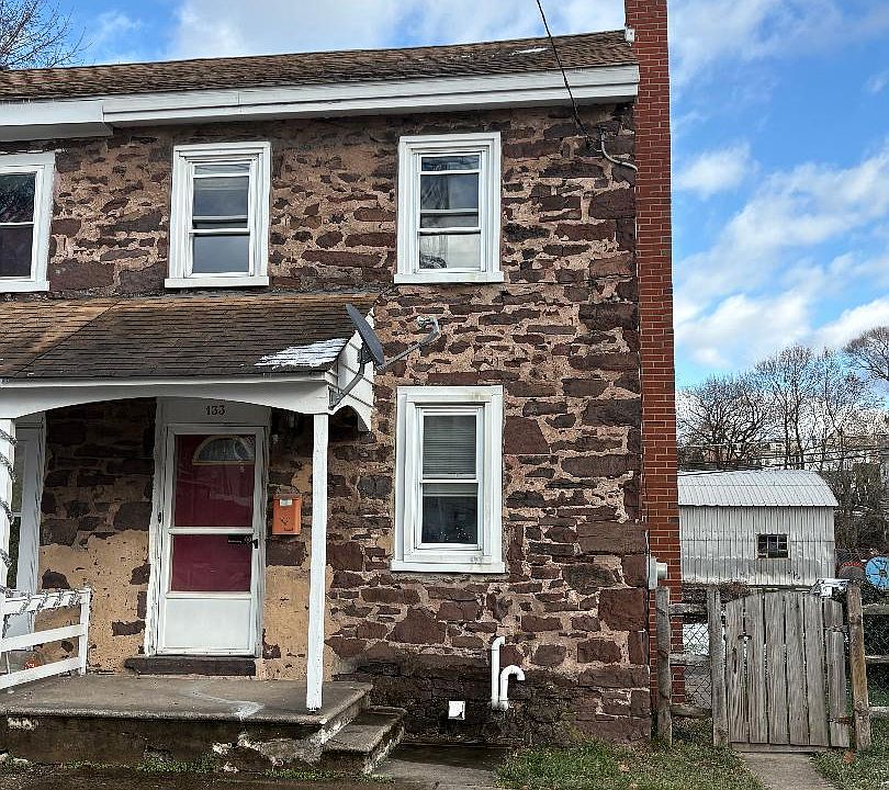Cute stone Twin Home from 1890 located in the Borough of Birdsboro with off street parking, a fenced yard and shed. This home will need some cosmetic attention and is being sold AS-IS. It is a 3 bedroom (one bedroom is a walkthrough), 1 bath home. Nice sized living room and dining room and knotty pine cabinets in the kitchen with an exit to the side covered porch. The full bathroom is located on the 1st floor. The 2nd level features 2 bedrooms and through one to the 3rd floor is a 3rd large bedroom with nice wood ceiling. According to the previous disclosure when property was purchased the gas heater and electric hot water heater were installed in December of 2018. The home does have a full unfinished basement. With carpet, paint and elbow grease, this home will be easily maintained.