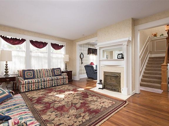 This stately and beautiful home is ready for your refresh! Walking distance to downtown Olathe, on a treed corner lot with a fenced yard and a gracious front porch! Fenced yard and back patio allow for lots of outside time. Inside you'll find tons of potential, with hardwood floors on main level, a welcoming formal living room (check out that alcove!), dining room, and family room for everybody to gather, plus newer A/C. Three bedrooms upstairs with ample closet space and a non-conforming bedroom/office in the basement too! Come make this special home your own.