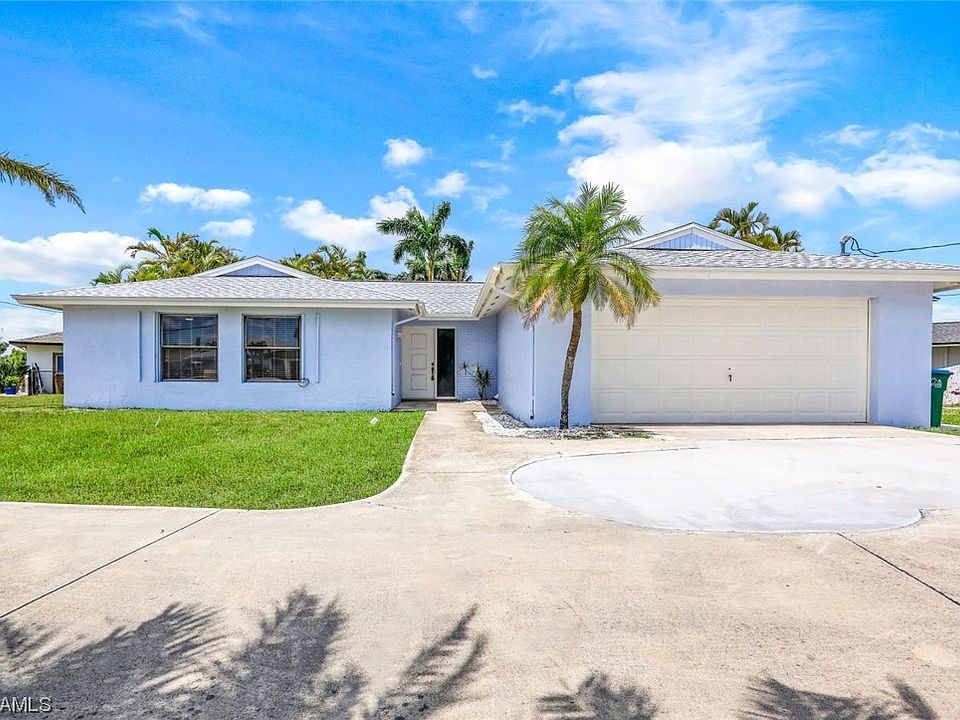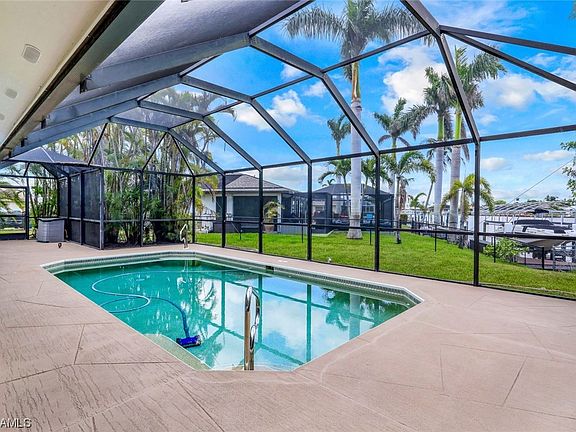 ALL ASSESSMENTS PAID pool home in south cape coral with a great water view! Many upgrades to include newer AC system, flooring, paint cabinets and so much more! Corner sliders in the living room, more sliders in the kitchen and master bedroom. Master bedroom is large, with a walk-in shower and walk-in closet. The lot is oversized at 1/3 acre with circular driveway. This is a great home for vacation rental or to live in. Close to shopping, main roads, restaurants and so much more. Don't hesitate to see this house before its off the market.