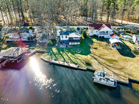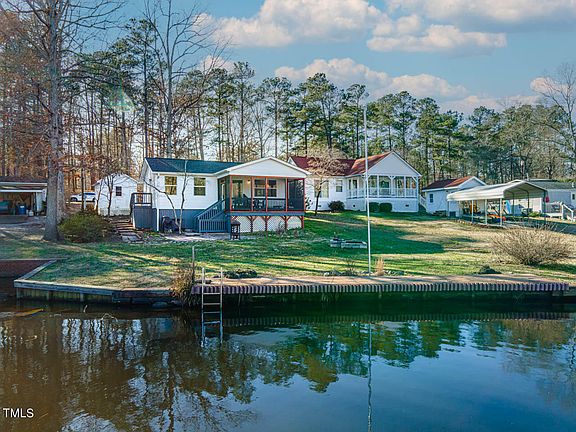 TIME TO ENJOY THE SUMMER. Get your summer going by owning this waterfront home in the gated resort community of Lake Royale. Park Model with a room addition and a cozy cottage feeling. Full Kitchen, 2 Bedrooms and Bath. Bathroom has been completely remodeled. Screened in Porch overlooking the beautiful lake. Property has a Fire pit and dock. Storage in the crawlspace with a washer and dryer. A shed in great condition is on the property to store your lake toys and accessories. The home is located by the boat launch and the new pickle ball courts. This is a must see! This is the perfect waterfront property for your family and friends to enjoy. Don't wait too long it is going to go fast!