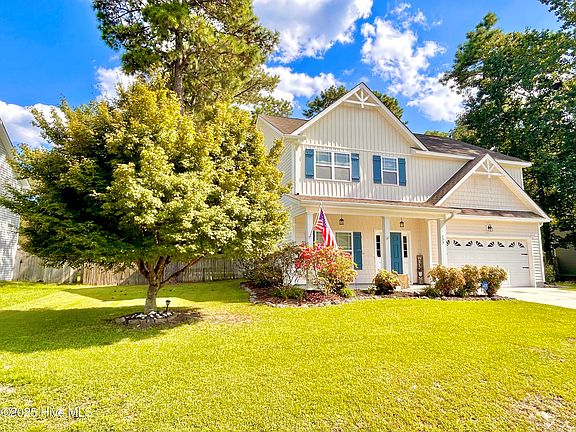 Welcome to Meadow Oaks in Richlands, your next haven located outside city limits and with NO HOA and NO CITY TAXES! Situated on .35 acres, this home boasts four bedrooms and two and a half bathrooms on a shaded lot. The covered front porch ushers you through the door, where you'll notice the stairs and formal dining room that's adorned with crafted wainscoting. Through the dining room, you'll be drawn like a moth to a flame to the kitchen, first stopping by the workstation desk area/coffee station, before moseying by the large pantry and glistening stainless-steel appliances. Whether you're a seasoned chef or a beginner in the kitchen, there is an abundance of space for everyone. With ample cabinetry, you'll have room for all your kitchen gadgets, cutlery, pots, pans, and the three crockpots you keep for those ''just in case'' moments. Hidden away in a corner cabinet is a Lazy Susan turntable for spices and accessories. The thick butcher block kitchen island allows for additional prep room, storage, and space for barstools on the opposite end. Thick subway tile backsplash allows for easy cleanup and complements the farmhouse-style color scheme. Adjacent to the kitchen is the living room, which offers a fireplace for those cool Carolina evenings and ceiling fan during the warm summers. Upstairs, you'll find all four bedrooms. The oversized primary bedroom offers not one, but TWO walk-in closets and an en-suite bathroom. Soak away a long day in the soaking tub or opt for the walk-in shower, and enjoy split vanity sinks. Down the hall are the three other bedrooms, shared second full bathroom, and at the end of the hall is the walk-in laundry room. Put your grilling skills to the test on the back patio or deck, where you'll be secluded by the privacy fence and shade from the trees. Close by are restaurants, schools, military bases, the hospital, OAJ airport, Steed Park, and local beaches. Call today and let this house, your HOME, be the next place you make memories!