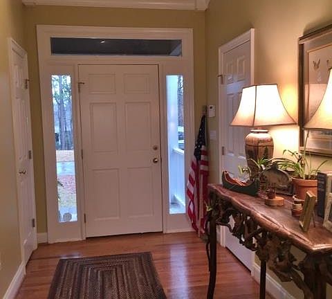 PRICE REDUCTION! This SOUTHERN LIVING COTTAGE was custom built by present owner and has been maintained in pristine condition, including a new roof and heat pump! This home is placed beautifully on a private road among other lovely homes, yet part of a relatively small upscale neighborhood. The open floor plan has a beautiful lake view through 8 ft Andersen doors with transoms onto the deck and spacious screened porch. The impressive stone wood burning fireplace is central to the family area. You will be impressed with the large granite counter space in kitchen for preparing meals, while enjoying conversation of those seated on the other side. The attention to details includes crown molding in every room, cathedral ceiling, other 9 foot ceilings, hardwoods, maple cabinetry, Andersen windows, built in chest of drawers in master, etc.