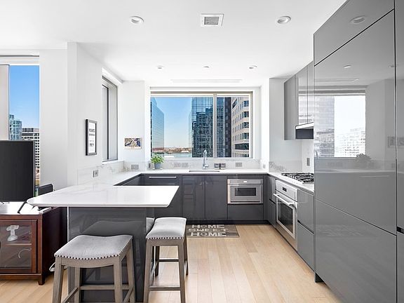 Located in the vibrant Seaport District, this stunning Echelon residence offers breathtaking views of the city from every room and the floor-to-ceiling windows provide abundant natural light throughout. The kitchen is adorned with custom grey-gloss cabinets, quartz countertops, and stainless steel Thermador appliances. The primary suite features a large en suite bathroom with marble floors and a shower, as well as three closets and a laundry room. Completing this unit is a private balcony off of the living room perfect for relaxing. Echelon includes over 50,000 square-feet of indoor and outdoor amenities, including an outdoor terrace and fire pit, private dining room, 22nd-floor sky lounge, on-site spa, 3 pools, state-of-the-art fitness center, indoor basketball court, golf simulator, yoga studio, and more. 24/7 concierge service is also included.