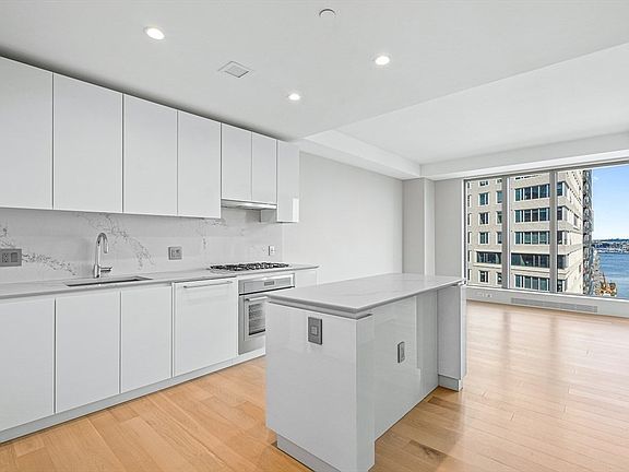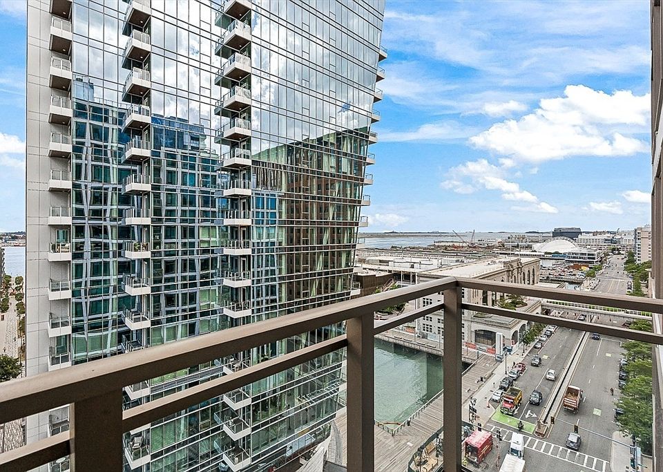 Front facing one bedroom, plus den/office at the Echelon Seaport is offered with private balcony, views, and (1) garage parking. An ideal floor plan with floor-to-ceiling glass windows facing east, private outdoor space, views spanning across Seaport District and Boston Harbor. Open concept kitchen with high-gloss white Italian cabinetry, integrated Thermador appliances, gas cooktop, quartz countertops and backsplash. Large bedroom, french closets, glass wall and views. Marble bathroom with walk-in shower. Interior plus room with closet, full laundry and white oak flooring throughout. The complex offers 24-hour Concierge, Valet Parking, Doormen, 1 indoor and 2 outdoor Pools, Hot Tub, Sky Lounge, Innovation Center, Fitness Facilities, Library, Private Dining and Wine Room, Outdoor Terraces equipped with gas grill stations and fire pits. An Iconic location offering fine dining, shopping, entertainment. Next to Downtown Boston, South Station, North End and all major transportation points.