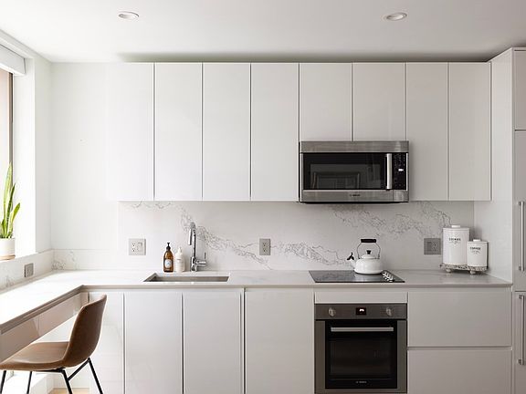 Welcome to Echelon Seaport; your one stop destination for luxury living & dining. South facing studio condo w/sleek white kitchen, custom Italian cabinetry, high-end Bosch appliances, 4 burner electric stove, breakfast nook w/room for 2 stools, gorgeous marble bathroom, custom wall separating bedroom area from the living room, custom walk-in closet as well as a coat closet, electric shades, white oak flooring throughout & in-unit laundry. 24/7 concierge & doorman. Everything is new as of 2019. Amenities galore with over 50,000 SF of indoor & outdoor luxuries including 1 indoor & 2 outdoor pools w/ample outdoor space for grilling & chilling. Wine room for private dining, private spa, library, multiple resident lounges, state of the art fitness facilities including a basketball court, hot yoga studio, top of the line exercise equipment, golf stimulator room, & resident sky lounge. Walk out your front door to the best restaurants & shopping in one of Boston’s most coveted neighborhoods!