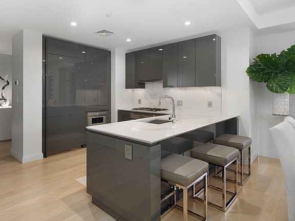 Located in the vibrant Seaport District, this stunning Echelon residence with floor-to-ceiling windows offers abundant natural light and breathtaking views of the city. The kitchen boasts custom grey-gloss cabinets, quartz countertops, and stainless steel Thermador appliances. The primary suite features a large en suite bathroom with marble floors, and a custom walk-in closet while the second bedroom has an en-suite bathroom of its own. Recent updates include recessed lighting in the living room, new closet build-outs (including a washer/dryer closet), a brand new office with beautiful mahogany wood and marble countertop, flushed AC vents, and a renovated powder room. Completing the unit is a private balcony off the living room, perfect for relaxing. An additional 40 sq ft of private storage is also included. Echelon’s nearly 50,000 sq ft of indoor and outdoor amenities consist of 3 pools, a sports simulator, yoga studio, club rooms, an exercise room, 24/7 concierge service, and more.