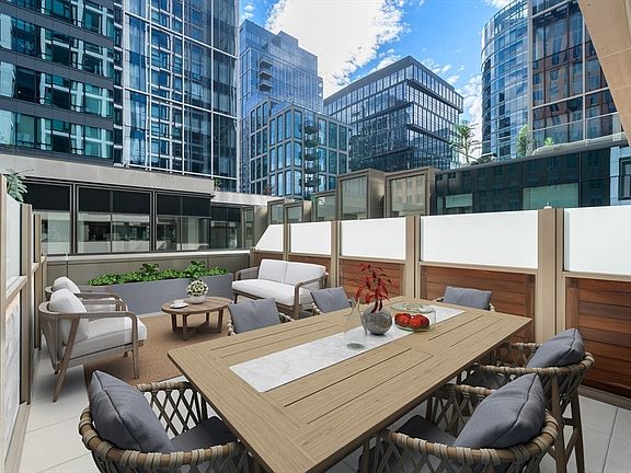 Step into a life of luxury in this one of a kind terrace unit at Echelon. Spend your evenings grilling on your private terrace—an urban oasis perfect for entertaining and relaxation. Inside, the open kitchen features custom white Italian cabinetry, quartz countertops, and top-of-the-line Thermador appliances, setting the stage for culinary adventures. White oak hardwood floors throughout, a spa-like marble bath, and an in-unit Bosch washer and dryer add a touch of convenience. Residents of Echelon enjoy exclusive access to over 50,000SF of amenities. Spend your weekends by one of the two outdoor pools followed by a rejuvenating soak in the hot tub. Stay active with state-of-the-art fitness facilities, including an indoor sports court, golf simulator, and yoga studio. In the evening, unwind in the Sky Lounge with spectacular views overlooking the Seaport or relax by one of the outdoor fire pits. One valet parking space is included. Welcome to a new standard of urban living at Echelon.