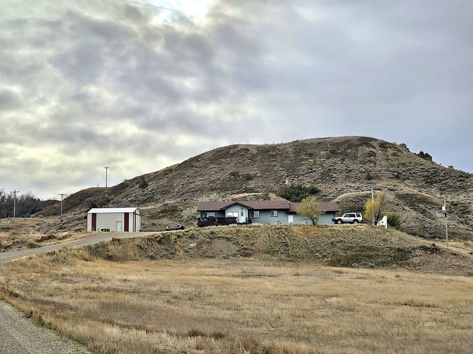 Country living just minutes from town on 9.7 Acres!: This stunning 3-bedroom, 2-bath home sits on 9.70 acres atop a hillside with breathtaking views of the Badlands of Eastern Montana. The main level features LVP flooring throughout and a brand-new kitchen with quartz countertops, stainless steel appliances, tile backsplash, and updated fixtures. Enjoy the open dining area, spacious family room with tongue-and-groove walls, and a remodeled full bathroom with new vanity, flooring, toilet, & fixtures. An enclosed porch and main-floor laundry add convenience. The basement offers a family room, storage area, two non-conforming bedrooms (one with sink, used as a reloading room), and an updated 3/4 bath with new vanity, toilet & fixtures. The boiler was replaced in 2023. The attached double stall garage is heated with newer overhead doors, and the 720 sq ft shop is spray-foamed, heated, has cement floors, and updated 220V power. Lift station and septic tank have also been updated. Enjoy peaceful country living with panoramic views, space for animals or hobbies, and the perfect blend of privacy and proximity to town.