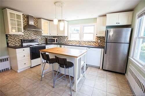 Close to CCSU, this charming home in New Britain on hilltop is ready for you to move right in. This freshly renovated home features hardwood floors throughout and a beautiful newer kitchen with stainless steel fridge and a nice island. A dining room, large living room with fireplace, office/bedroom, sunroom and half bath complete the first floor. Upstairs you'll find 2 generously sized bedrooms and a full bath. During warmer months, enjoy the sunroom, or concrete patio secured by a large fenced backyard. There is plenty of off-street parking, large driveway as well as one car garage. There's plenty of storage in the basement and a large backyard to enjoy in the nicer weather. Alarm system and Video cameras in place. Very easy acces to CCSU, Uconn Health, Westfarms, R9 and E84. Located just minutes from restaurants, stores, bars, churches & schools, you may not need a car to drive. Don't delay - make your appointment to see this home today! Tenant to do snow removal & lawn care. One month Security Deposit, First and Last Month Rent and good credit required.