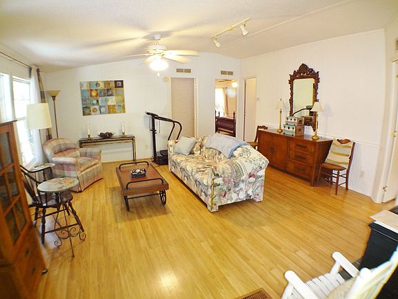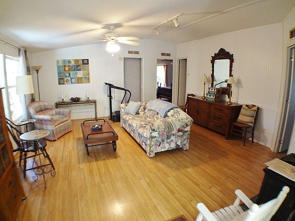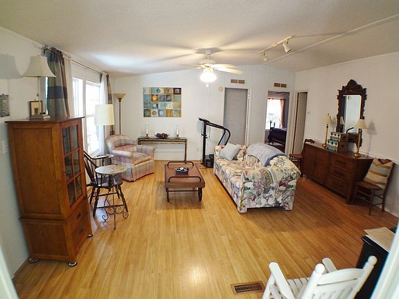 This home sits on 1.32 acres in a 55 or older mobile home park. Nestled in the woods, this home has a large covered and open porch to enjoy nature and views of the woods with a quiet, peaceful, private setting. The kitchen is light and bright with large palladium windows and a window over the sink to enjoy the outdoors from within. The kitchen has lots of counter space, cabinets for storage and an island. The living area also has large windows,nice laminate floors, high ceiling and a gas stove for those colder days or if the electricity goes out.The bedrooms are split with the master on one side that open to the laundry room for convenience, a walk in closet and a large master bath with both shower and garden tub. The space outside has been utilized for a sitting area under the trees and plenty of parking. Located between Franklin and Clayton Ga., this home is perfect for a vacation home or year round.