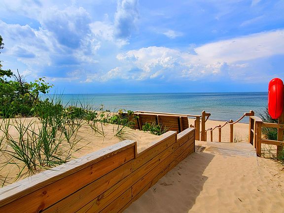 PEACEFUL LAKE VIEW HOME ON SHORE DRIVE, OGDEN DUNES, WITH IMMEDIATE BEACH ACCESS TO LAKE MICHIGAN! WALK STRAIGHT TO THE SANDY BEACHES FROM YOUR LOVELY, WELL-MAINTAINED VINTAGE 2-STORY HOME, SET ON A WOODED, LANDSCAPED LOT. OR JUST ENJOY THE PARK-LIKE SETTING & RELAXING FLOWER GARDEN & KOY POND IN YOUR VERY OWN BACK YARD! Working from home today? No problem! Enjoy the healing, natural views from either of your two sun rooms or home office in your little piece of paradise. All or most of the work has been done for you, with so many updates on the big ticket items: All new electrical; brand new roof 3 yrs ago, 35 yr shingles, vented; flat roof was replaced with slanted roof. Newer kitchen boasts baked-on hardwood floors (extra sturdy), over $10k in solid Uba Tuba granite countertops, solid hickory cabinets, all adjustable internal lighting, food pantry, brand new dishwasher & microwave, newer fridge, granite cutting table & more! Quality throughout: additional 6" insulation (total 10") + insulated Thermopane glass in both sun rooms, 1" thick knotty pine panels. Solid Colonial brick, solid concrete block in SE corner & stucco (updated 4 yrs ago). 1500 gal, new septic drywell 8 yrs ago. Besides the beautiful park-like setting in the back yard, the National park owns the property behind the house, so it will never be built on! Needless to say, this little gem has been so loved and well taken care of, it's being sold as is, no seller concessions. Bring your beach gear, along with your best offer. Just in time for summer!