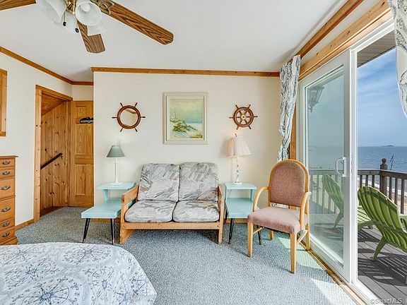 Welcome to this direct waterfront home with its own private beach!! This year round home offers so much and more. Experience the view of the shoreline, Duck Island and Long Island from the upper level private master bedroom deck while having your morning coffee. There is a master bath on this level as well. On the main floor you will find a rustic great room which has a stone wood burning fireplace and has plenty of room to entertain.The loft overlooking the great room can be used for extra sleeping space if needed. Have your dinner in the dining room while enjoying your view of the ocean. The fully applianced kitchen has lots of cabinet space. There are two spacious bedrooms and a full bath between the bedrooms. The sun room/enclosed porch is the perfect spot to relax at night and watch your favorite show. Step out of the sun room onto the wood deck and onto your private SANDY beach for your outdoor enjoyment. It doesn't end there!! A two car detached garage has a storage shed as well as a finished bonus room on the second level. Don't miss the opportunity to see this waterfront home!!