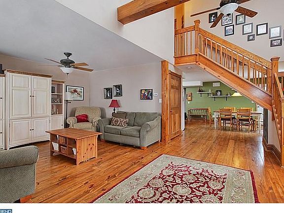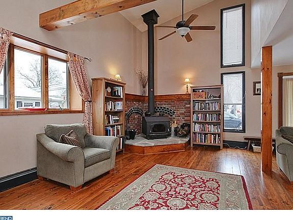Totally remodeled 3 bed 2.5 bath contemporary with an open floor plan, high ceilings and hardwood flooring. The great room greets you with the wide plank pine flooring, cathedral ceilings, exposed beams and a wood burning stove that heats the whole home! Large kitchen with solid wood cabinets, moveable island and large eating area with door to deck and back yard. Main floor bedroom and full bath for mutiple uses. Open staircase leads you the the 2nd floor with the main bedroon & another nice sized bedroom both with cathedral ceilings and the hall bath. Plenty of closet space too! The finished, walk out basement has a family room, large laundry room, storage, 1/2 bath and french doors to the backyard. Newer roof (2007), water heater (2010), wall AC units (2007). This home has been updated through out. Just move in!