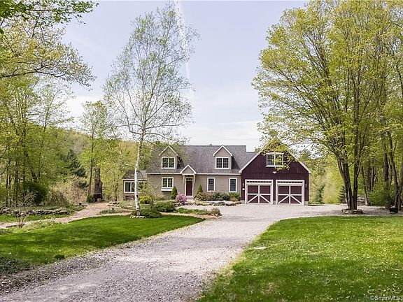 Enjoy the picturesque views from this beautifully custom built Cape nestled in 55 acres of land that include a rolling hill, trails and a brook that runs along a large pasture that provides potential for turning out horses! Large kitchen that opens to the living area with cathedral ceilings illuminate with natural light throughout the day. Gorgeous soapstone wood burning stove under a "circa 1800 hand-hewn Hemlock beam" fireplace mantel will keep both levels nice and toasty on those fall/winter nights. Roll out the retractable awning on the large Trek deck to provide shade during hot months. Radiant heat in tile flooring on main level for extra comfort during cold months and a 4 season porch/den area with large screened windows includes heat to enjoy the outdoors during any time of the year! Master can be on main level or top level! Both have ensuite bathrooms and large closets! Cozy loft office on upper level with spectacular views! Huge bonus/great room with vaulted ceiling above an oversized 2 car garage that offers Drive Thru access to the backyard for extra convenience! Plenty of storage throughout the house as well as a full basement and extra wide stairs and oversized doorways. You get to enjoy all the beauty of nature with low maintenance gardens and daily wildlife sightings but still have an easy commute! Just minutes from Rt 8! Must see in person to appreciate this beauty! All who enter must wear masks and take off their shoes or wear booties over shoes.