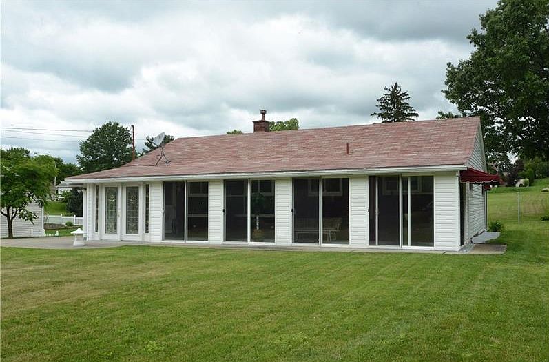 This charming 3 bedroom 1.5 bath has two wonderful sun rooms, large eat-in-kitchen, beautiful hardwood floors and a large semi-finished basement. The homes also features a cement driveway with an over sized three stall garage with storage space above. Great level lot for outdoor entertaining. This home is located in the New Brighton School District. Close to shopping and restaurants. Third bedroom can be used as a den or dinning room.