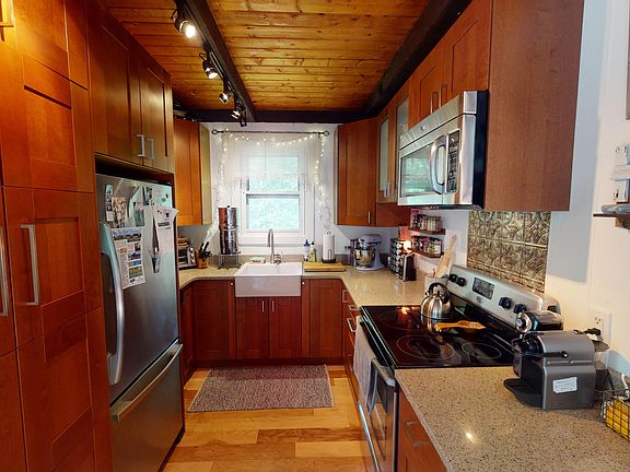 Looking for the perfect getaway? Here it is!! This saltbox features 3 bedrooms, 1.5 baths on 1.03 acres. Home is immaculate and features cathedral ceilings, Custom kitchen with quartz countertops and stainless steel appliances, skylights, updated bathroom, brick-faced fireplace w/woodstove insert, newer roof, ductless heat/ac pumps. Upstairs are 2 bedrooms with balcony. Hickory hardwood floors thru-out, great screened in porch, paved driveway. Situated on 1+acres of land