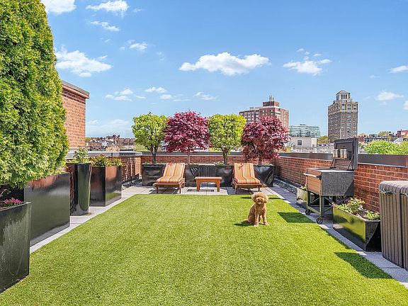 The Penthouse at 133 Sterling Place offers one the quality and features thought to be implausible with city living. A once in a lifetime lifestyle becomes attainable in this FULL FLOOR PRIVATE Residence PH5A at 133 Sterling Place. This luxurious penthouse unit sacrifices nothing in its successful pursuit to provide absolute privacy, expansive outdoor space, and impeccable, sun-drenched interiors. Boasting three spacious bedrooms, two modern baths and laden with bespoke details, Residence PH5A provides the perfect symmetry of elegance and comfort. Upon entering, one will be bathed in sunlight pouring from the 17 windows dressed in electric shades and warm, inviting 5" Brazilian Walnut floors. The open-concept living area is highlighted by a hand-carved Italian stone gas fireplace. Enjoy music from the Atlantic Surround Sound System. One will notice the exquisite imported wall coverings. The private 200 SF terrace opens gracefully from the living room to extend to a tranquil outdoor seating alcove with Brooklyn Brownstone views. From the Italian Key Cucine kitchen to Antonio Lupi bathrooms as well as Asian herringbone-linen wall covering by Philip Jeffries: PH 5A offers Modern/Contemporary meets Art Deco. The baths are designed by Italy's Antonio Lupi also featuring German-made Dornbracht fixtures. Luxurious finishes and expert craftsmanship are found in the porcelain metal infused tiles from Spain. The custom baths create a serene luxurious retreat. Culinary creativity knows no bounds and delectable masterpieces are crafted with finesse in this meticulously designed windowed kitchen. A vented kitchen design from Italy's Key Cucine, Quartzite countertops and backsplash, as well as custom brass kitchen handles by Buster & Punch, London are tasteful and elegant. A Wolf stove with vented hood and Sub-Zero wine refrigerator add to this elite space. The corner penthouse at 133 Sterling Place offers a private 1,800 square foot lush, urban oasis where Brooklyn and Manhattan sunsets and skyline vistas await. This roof deck draws inspiration from the interior of the home, flawlessly renovated for both relaxation and entertainment: it features Restoration Hardware furnishings complimented by a teak dining table and teak loungers shipped directly from Thailand. Host parties with friends and family using the outdoor grill and enjoy the shade and protection from the elements provided by the Shade F/X dining canopy imported from Canada. The deck was thoughtfully designed with a 4-zone irrigation system that maintains the flourishing greenery that surrounds you. The parameter lighting creates a sultry ambiance, while the electricity and water line hookup provide added convenience. The Synlawn turf grass creates a serene atmosphere. This turf grass is specifically designed to absorb less heat, keeping you and your pets cool and comfortable on even the warmest days. One of the most remarkable features of this stunning roof deck is the complete privacy it offers. In addition to its unparalleled privacy, the roof deck offers expansive city views that are protected by the Landmark Preservation Commission. You can enjoy the beautiful skyline and iconic architecture of the city with the peace of mind that your view will remain unobstructed. Penthouse 5A is a rare gem offering an unrivaled living experience in an historically significant neighborhood. Surrounded by the most highly desired public and private schools Berkeley Carroll (around the corner) and Poly Prep, Prospect Park, breathtaking residential architecture, The Brooklyn Museum, BAM, The Botanical Gardens and The Brooklyn Conservatory of Music. Enjoy a small town vibe without sacrificing city living. The Vermeil features 22 units in a 5-story elevator building, a video intercom, a community room, low common charges, a heated garage, and basement storage units. Deeded Parking is another luxury that can be purchased. Storage transfers with the sale of the PH.