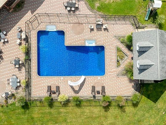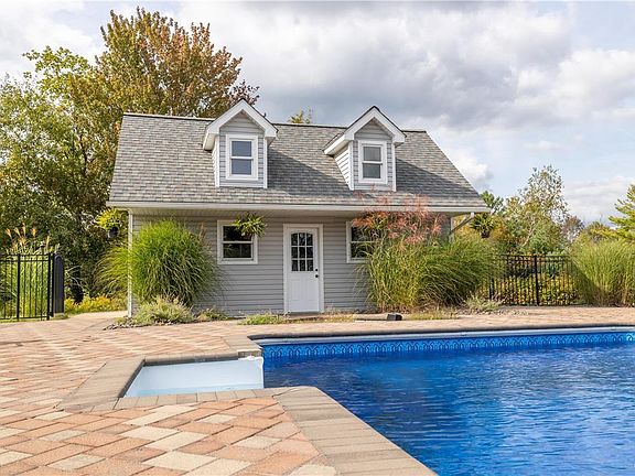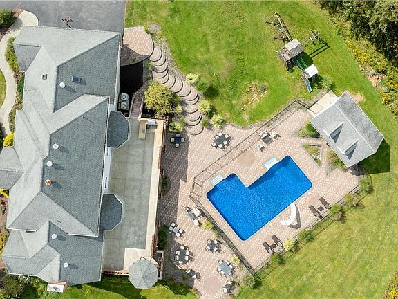 Welcome to your dream home! This stunning estate offers over 4, 000 sq. ft. of luxury living on 9.5 acres in a serene cul-de-sac. Enjoy an expansive stone patio with an in-ground pool, perfect for gatherings. The walk-out deck, complete with a BBQ, overlooks a lush meadow, creating an ideal setting for alfresco dining and entertaining. The grand foyer leads to an elegant kitchen with granite countertops and stainless steel appliances, opening into a family room with vaulted ceilings and a cozy fireplace. A formal dining area, expansive laundry room, half bath, and office complete the first floor. The primary suite boasts TWO bathrooms & 2 walk-in closets. The second floor features three large bedrooms and a full bathroom. The finished attic can be a 5th bedroom with a full bath. Located in the North Pocono School District, this home blends luxury, comfort, and functionality, ready for its next family to create unforgettable memories. Don't miss this incredible opportunity. Schedule a showing today