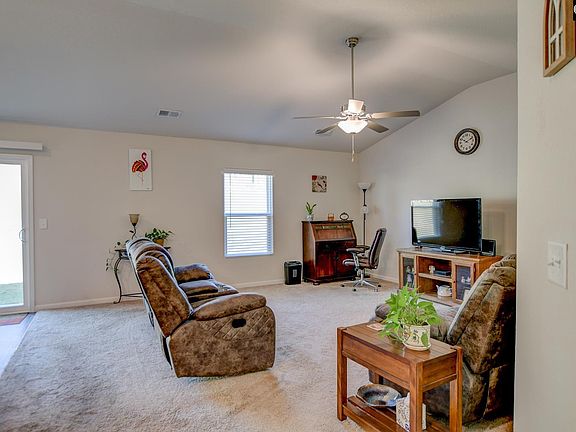 Price improvement on this truly move-in ready home! This bright and open one-level home is ready for its new owner. You will love the wide and welcoming entry hallway that leads past the guest bedrooms and bathroom into the living spaces. The vaulted ceiling enlarges the feel of the living room and eat-in kitchen. The white cabinets and granite counters show off the stainless appliances--all of which will convey. The master bedroom with private bath and walk-in closet is at the back of the house and also has a vaulted ceiling. This one is perfect for anyone who is looking for an efficient split floorplan that works for anyone who wants no stairs and low maintenace living!