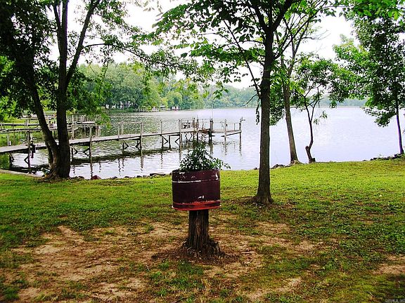 BEAUTIFUL LAKEFRONT PROPERTY SITTING ON THREE LARGE LOTS ON HARRIS BRAKE LAKE!!! MOVE IN READY!!! This three bedroom two bath lake house is absolutely amazing with an awesome view of the lake from the living room through the large sliding glass doors and large windows in the primary suite. Enjoy and cozy up to the wood burning fireplace in living room with beautiful built in bookcases with glass front. All kitchen stainless steel appliances, washer & dryer convey with property. The man of the house will love the spacious attached workshop with electric off the two car garage area. Nice large garden area out back as well as two storage buildings. Covered back walk around deck from the living area to primary suite with stairs walking out to a nice size patio that's nicely landscaped. This home is move in ready and would make a nice vacation home or AirBnB. This lake front property sits on three large lots on Harris Brake Lake. Harris Brake Lake is the third largest lake owned by Arkansas Game & Fish Commission. Spend your days fishing and enjoying your time spent with family and friends on one of the prettiest lakes in Arkansas. Come check it out for yourself. A MUST TO SEE !!!