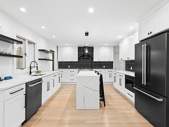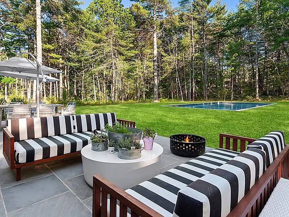 Tucked perfectly between the coveted enclaves of Sag Harbor Village and East Hampton Village, this completely reimagined contemporary is the ultimate summer escape. Situated on a serene and professionally landscaped 2.30-acre lot, the property offers exceptional privacy, sun-drenched spaces, and seamless indoor-outdoor living.Step into the soaring main living area, where natural light pours through oversized windows and double sliding glass doors lead out to a brand-new bluestone patiothe ideal setting for lounging poolside, entertaining guests, or quiet enjoyment. At the heart of the home is a chef's dream kitchen, fully renovated with matte black appliances, a 6-burner gas stove, Quartz countertops, a dramatic waterfall island, and bonus wet bar with wine fridge. The open-concept layout blends effortlessly into the dining area and ample living room with fireplace.This 2,725 SF home features 4 bedrooms and 3 full baths, including a main-level primary suite with private patio access and a luxurious spa-style bathroom boasting a floating double vanity, soaking tub, and glass step-in shower. Upstairs, a loft office/den provides the perfect work-from-home hideaway or reading nook.Outside, the 20 x 40 heated gunite pool is surrounded by manicured lawns and tall trees for total seclusion. Just minutes away, enjoy kayaking and paddleboarding at Northwest Harbor Park, or explore nearby nature preserves and hiking trails.