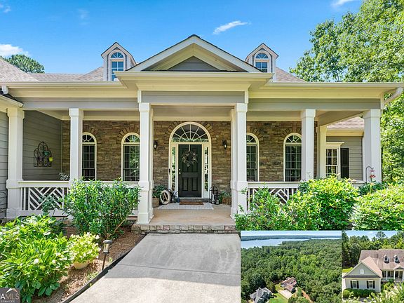 Welcome home to this custom-built 4-bedroom, 3.5-bath, one-owner ranch on a full, unfinished daylight basement situated on a large estate lot backing up to Lake Allatoona. You can walk to the lake and it's only 1 mile to the beach and boat access!! This home features a separate dining room, office/formal living room, and family room with soaring gorgeous coffered ceilings and a stone fireplace, open to a breakfast room and gourmet kitchen with granite countertops, stainless steel appliances, and plenty of storage. The primary suite on the main includes a vaulted tray ceiling and a beautifully updated ensuite bath with double vanity, separate whirlpool tub, glass shower, and a large closet. A sun porch/screened porch and sundeck are just off the master. Two additional bedrooms and a full bath are on the main floor and the fourth bedroom and full bath are upstairs, along with easy attic storage access. Access to the upstairs bedroom is just off the laundry area where a private staircase leads up. The main-level laundry room includes a sink and built-in cabinetry for added convenience. An extra-large two-car garage with side entry door offers easy access, and ample driveway parking offers convenience for family and guests. Additional features include hardwood floors, beautiful crown molding, plus a LARGE unfinished basement stubbed for a bath with a fantastic layout for future finishing. The basement also features two sets of French doors and two breaker boxes. Privately situated on a manicured lot with mature trees and a welcoming rocking chair front porch, this home is just minutes from Lake Allatoona, Sweetwater Creek State Park, Big Door Vineyards, and all the amenities Cherokee County has to offer.