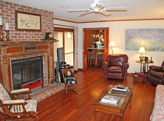 Lovely updated home with handsome heart pine floors in foyer, family room and eat-in kitchen. All kitchen appliances in brushed stainless steel remain and are only a year old. Hall bath has whirlpool tub and there is a ceramic tile shower, handicap accessible, in the master suite. Built-in desk and cabinet in breakfast area provide a convenient area for a home office. The Carrier HVAC was installed in 2009. One of the high lights of this home is the screened porch with cathedral ceiling, wood floors and cool ray shades. Off the screened porch and opening to the fireside family room is the deck, which overlooks the large back yard.