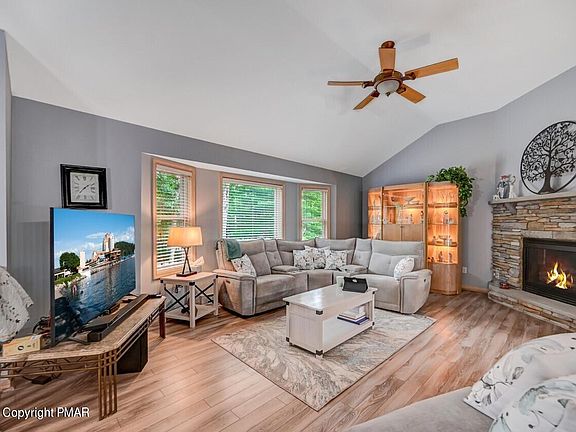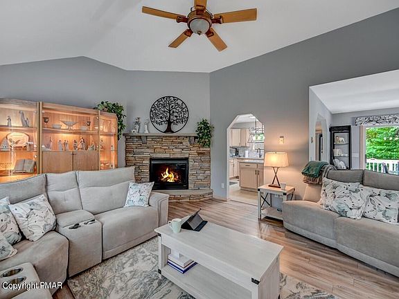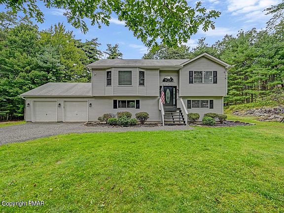 Indulge in timeless comfort in this 3-bed, 2-bath gem! Revel in a renovated interior, generous storage, and the luxury of a spa tub. With a 2-car garage, almost an acre of space. The HOA offers a lake, beach, rental pavilion, playground area, annual festivities, and more!!! You are, literally a few minutes from the heart of Tannersville and the Crossings Outlets, Camelback Mountain Water Park & Ski Resort, Mt. Airy Casino , Greatwolf Water Park, and all that the Pocono Mountains has to offer!!! Effortless Route 80 access, 90 mins from NYC and Philly. Experience the best of both worlds!
