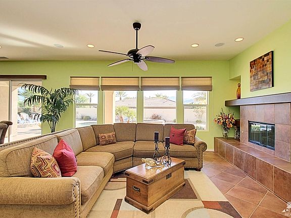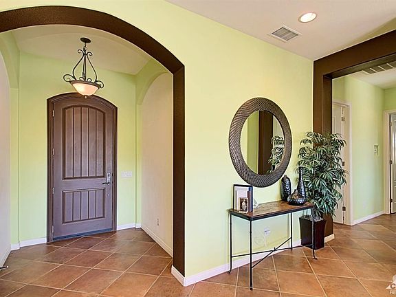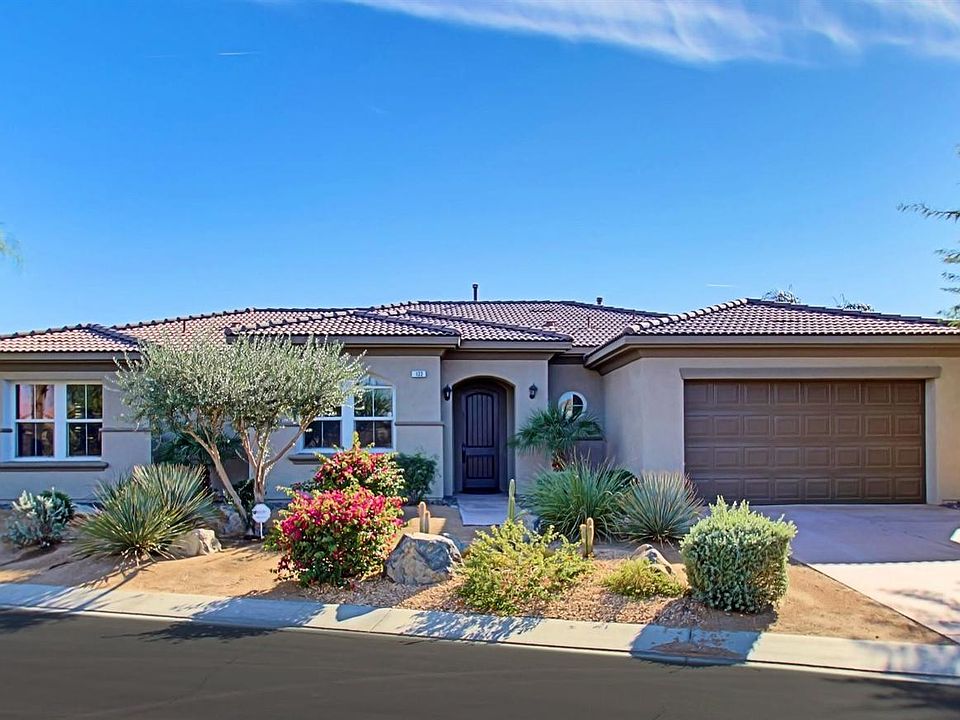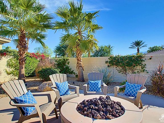 This stylishly chic gem features an ultra-private south-facing backyard, resort style pebble-tech saline pool and hot tub, built-in gas fire pit, built-in gas barbecue with extended island and mountain views. As you enter through the formal entry, take in the spacious living and dining area, styled with high ceilings, a gas fireplace, built-ins, custom paint, 24x24 terracotta tile throughout and a sliding glass door opening to the pool. The adjacent gourmet chef's kitchen features granite counters, upgraded stainless steel appliances and a casual dining area that overlooks the pool and outdoor entertaining area. The large master suite retreat has views and also opens to the pool, spacious walk-in closet, private en-suite bath with walk-in shower, jetted tub and dual vanities. Bedrooms two and three are on the other side of the house and share a Jack and Jill bathroom that features dual sinks and a separate shower/tub, plantation shutters and large closets. Available turnkey furnished.