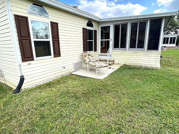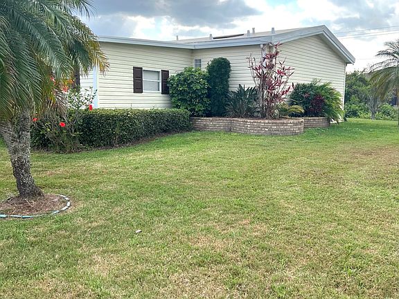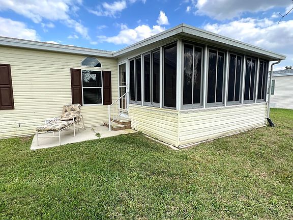 MOTIVATED SELLER!!! GOLF CART INCLUDED! this beautiful 2 bedroom, 2 bathroom, split floor plan comes partially furnished and also provides an open living and dining area with sliding glass door to the amazing sunroom (12'x15') with acrylic windows which is also under air conditioning from the main house. Off the kitchen, there is a large separate laundry/ built-in office area (8'6" x 9')..that you'll actually use! Generous main bedroom (14'6" x 12'), features two walk-in closets, with a spacious ensuite (9'x9'6") with extra large cabinets for storage, as well as the vanity, walk-in shower, and a soaker tub! You will love this layout! Think about it, OVER 1400 SF including a sunroom. Relax and enjoy the sunsets on the concrete patio in the quiet backyard. The double carport allows additional outdoor living space, sit back and chat with neighbors as they pass by and the driveway can hold 4 cars. A few great updates include Anderson door with a built-in screen, a new vapor barrier in 2022, new duct work and vents in 2022 plus the membrane roof in 2021 and a new shed roof in 2022 too! With having the indoor laundry it allows for the attached extra large shed to be used for all your holiday decorations and beach gear! Located in a premier 55+ community. Pet friendly, amenities include, a newly refurbished Olympic size swimming pool and sundeck, and an outdoor resident kitchen to entertain your family or friends located on Palm Lake in The Gardens. Activities are galore! Tennis, pickleball, horseshoes, state-of-the-art fitness room, water aerobics, library, 3 billiard tables, craft room, a large ballroom for dinners, dances, entertainment, and more. Lot rent includes all amenities, lawn mowing and trimming PLUS INTERNET AND CABLE WITH TWO HD BOXES! The current monthly lot rent $966.00 plus taxes $57.70. Contact us today for a private showing or if you're not locate we can complete a viewing by virtual tour. All listing information is deemed reliable but not guaranteed and should be independently verified through personal inspection by appropriate professionals. Integrity Mobile Home Sales cannot guarantee or warrant the accuracy of this information, measurements, or condition of any property. Measurements are approximate. Lot rent is subject to change.