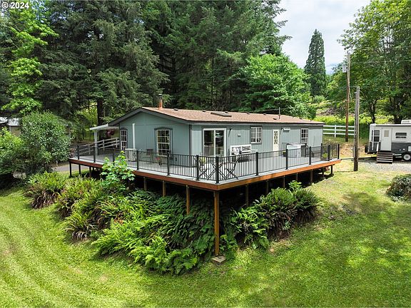 Need some tranquility? Take a look at this updated/remodeled 1990 manufactured home that sits on 2.01 acres nestled in the trees! With 3 bedrooms, 2 bathrooms, and an open floor plan, this home also offers multiple updates including interior and exterior paint, new flooring, a newly remodeled primary bathroom, and more! Outside offers a paved driveway, large shop, RV parking and hookup. Enjoy your morning coffee on the wraparound deck overlooking the trees and the large, manicured yard. This home even has fruit trees for your enjoyment! Conveniently located just 38 miles south of Eugene, and 36 miles north of Roseburg! Come take advantage of this incredible opportunity to own a truly beautiful piece of property!