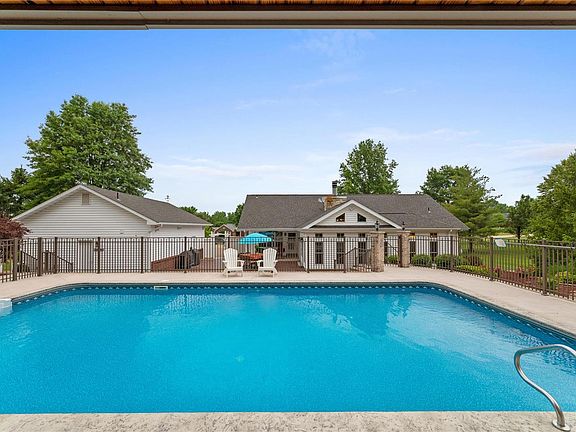 You do not have to fly to Hawaii to have your very own paradise every day! This custom home in the Village of Flint Hill on 1 acre is meticulously cared for, exceptionally well built, and offers an outdoor oasis you won't believe! There's a large sparkling pool with a gigantic covered pavilion with a Viking outdoor kitchen, tv, fireplace, lighted full bar and lots of shady lounging/entertaining space. An amazing updated kitchen inside, a finished lower level sports bar, beautiful custom woodwork and much more awaits you when you step into this fabulous home. Oh and don't forget the detached garage w/ full bath all surrounded by beautiful custom concrete. Lots of patio space as well, both covered and open for easy entertainingSho