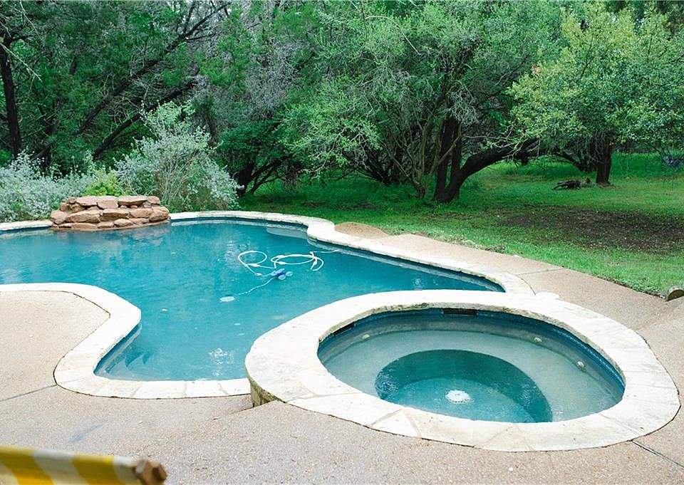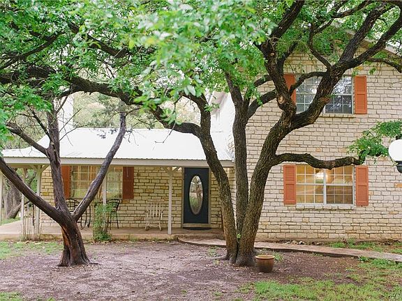 Secluded 3.84 wooded acres is the tranquil setting of this well loved home. Tile on the main level and new carpet through out the upstairs. Built-in cabinets in family and dining room. Low maintenance exterior with metal roof, stone, and stucco. The 3-car over sized garage has many storage cabinets and a great workspace. There is a beautiful heated in-ground pool with a relaxing water feature. You can entertain by the pool and enjoy nature with a porch that wraps around the house. There is a Large fenced in shed that is perfect for chickens and goats. You'll love all the peach, plumb, and fig trees on the property!